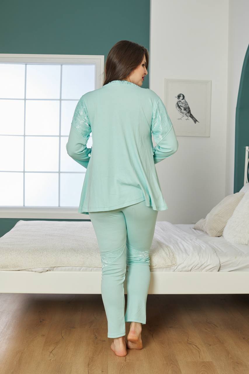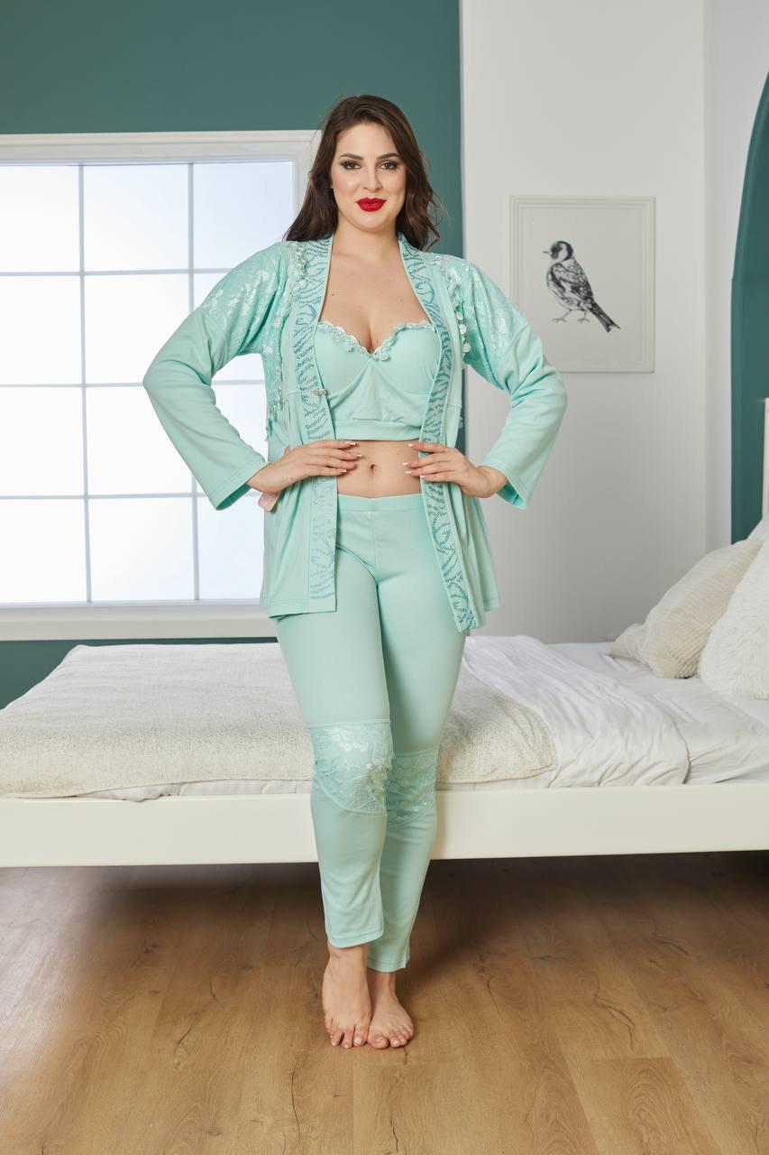 بيجاما قطن بترولي ثلاث قطع مع ستراس